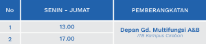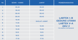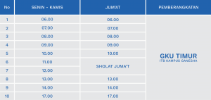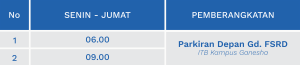 Jadwal Pemberangkatan dari ITB Kampus Ganesa – ITB Kampus Jatinangor